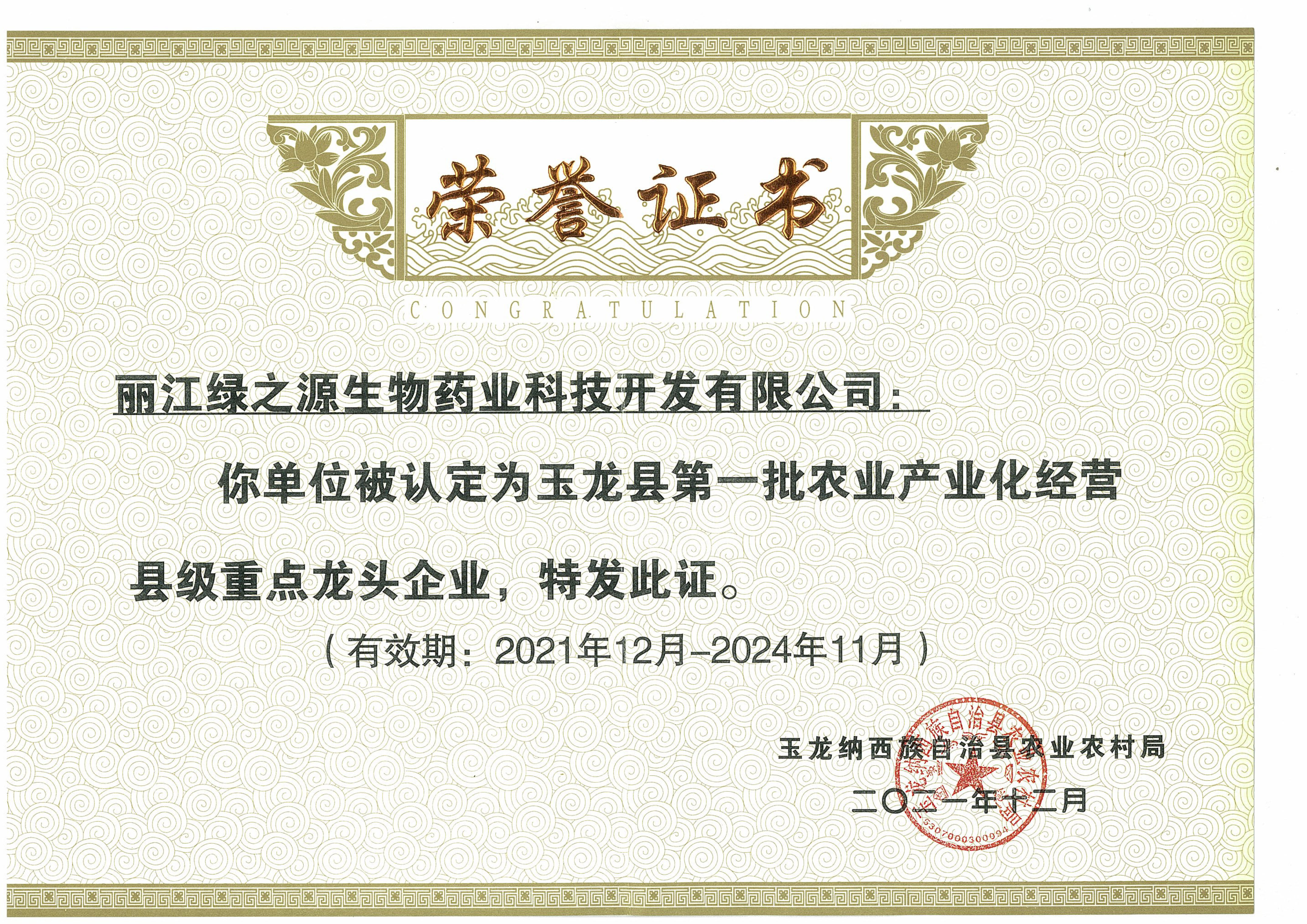 《龍頭企業(yè)證書》